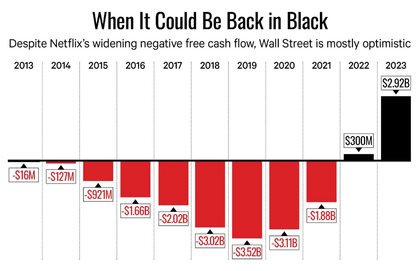 Despite all of its commercial and cultural success, Netflix continues to lose money. It had a negative cash flow of $11.14 billion from 2015-2019 and is expected to lose about $5 billion more in 2020 and 2021.