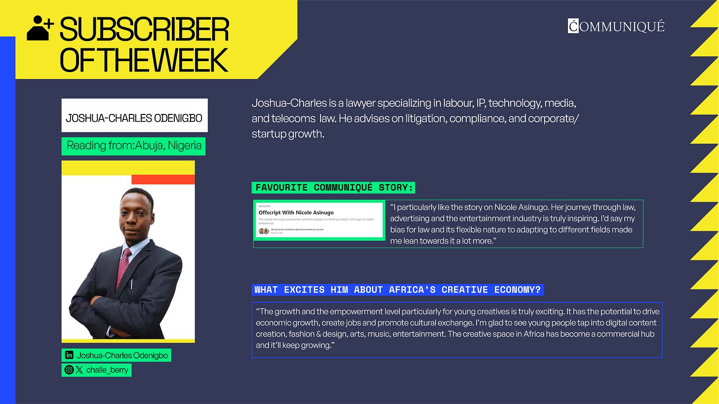 Explore more of Africa’s creative economy in one place. Communiqué’s African Creative Economy Database tracks 1,000+ companies, events, investors, and government actors across the continent.